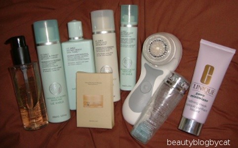 I use Liz Earle Cleanse & Polish, Liz Earle Skin Tonic, Liz Earle Skin Repair Moisturiser (Light), MAC Cleanse Off Oil, WEI Eye Cream, Liz Earle Gentle Face Exfoliator and Clinique Pore Minimizer Refining mask. Best of all, I use my Clarisonic Classic twice a day! I started off using it on the low speed setting and after 1 week for twice-daily use I switched it up to normal.